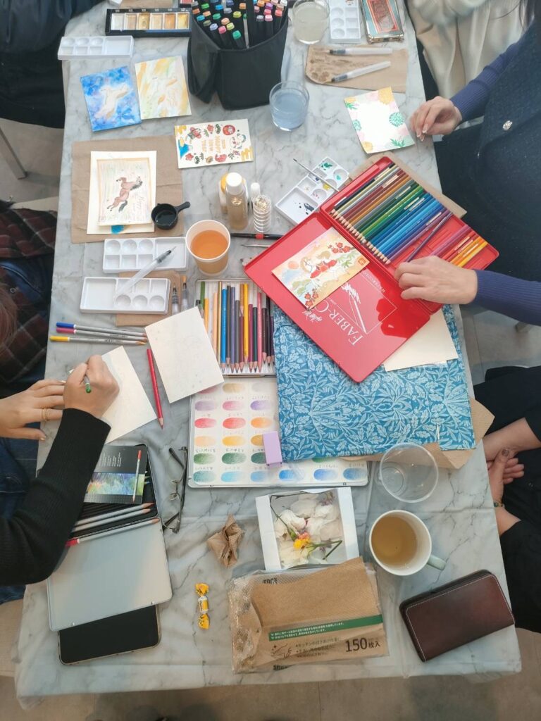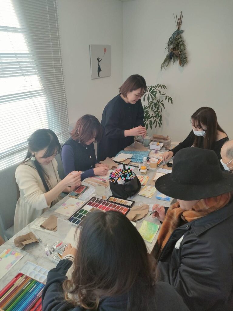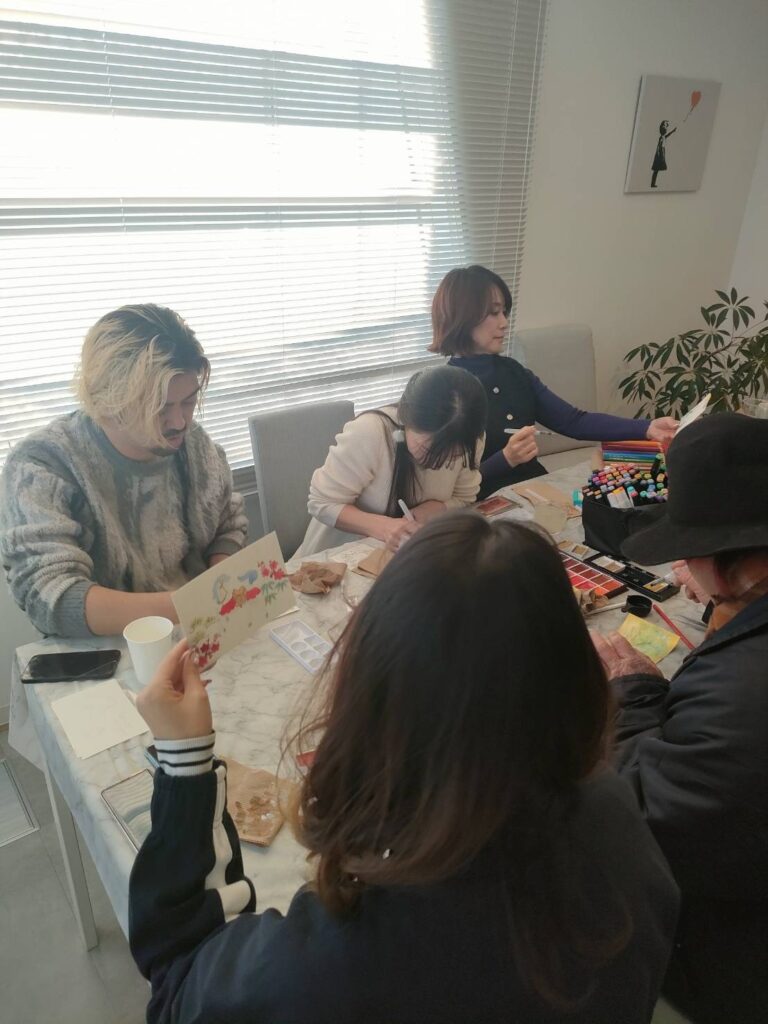 フリーランスデザイナー、イラストレーターのHiroさんによる年賀状作りのワークショップを