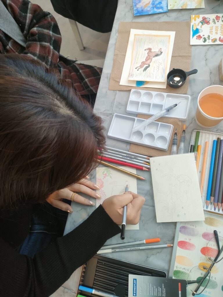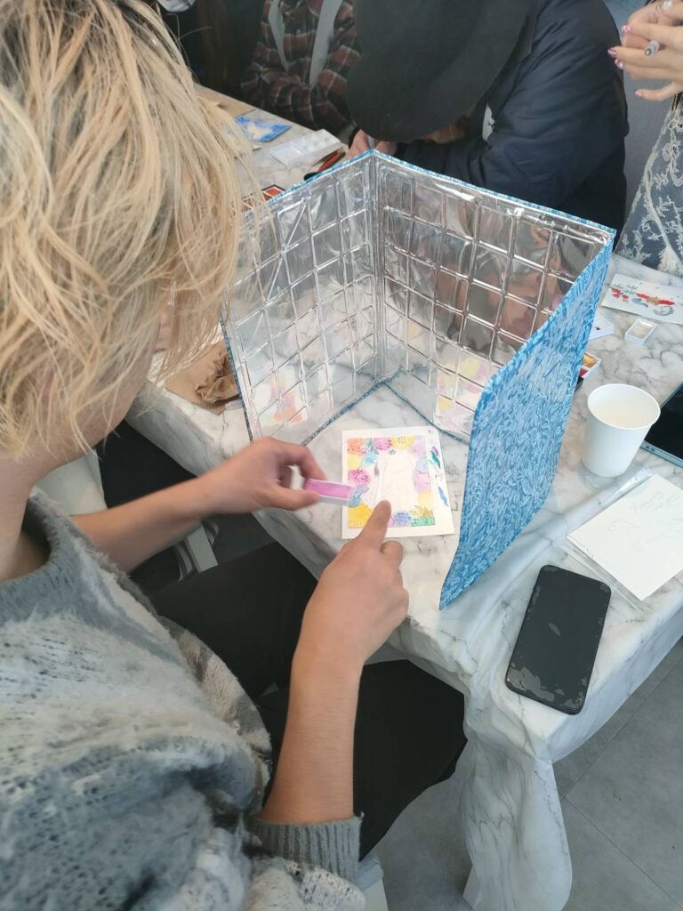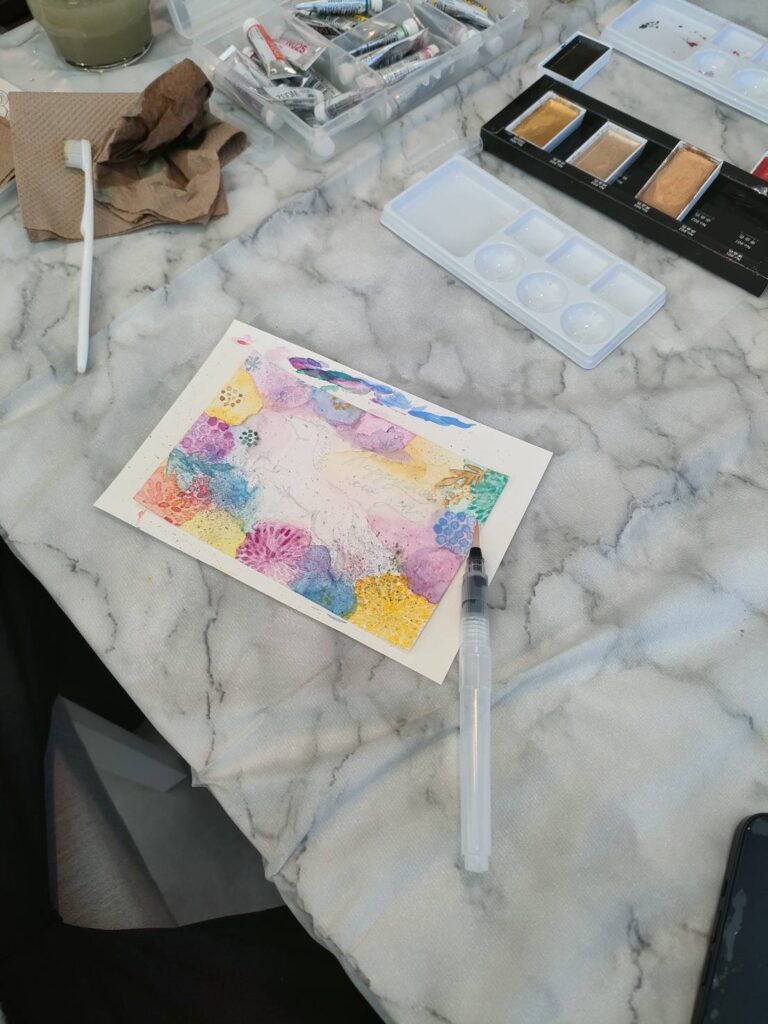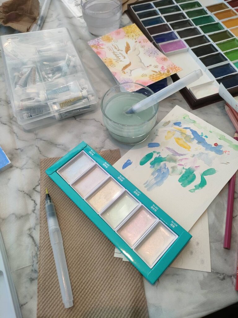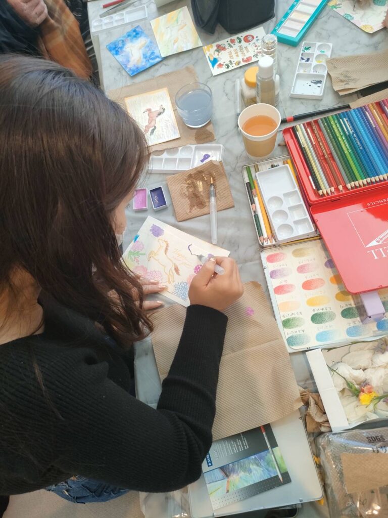 画材も色鉛筆や水彩、キラキラの金箔など多彩で